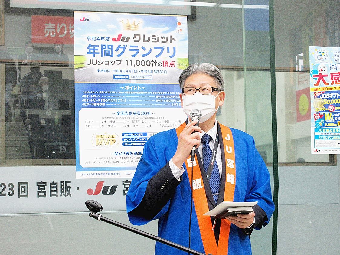 【宮崎】JU宮崎(平山学理事長)は、宮崎市の常設会場で「第123回 宮自販・JU宮崎合同オークション」を開催した。出品台数は253台で、成約率は85・4%の好実績だった。 競り開始前のセレモニーでは、宮崎県自動車販売店協会の笠原克志中古車...