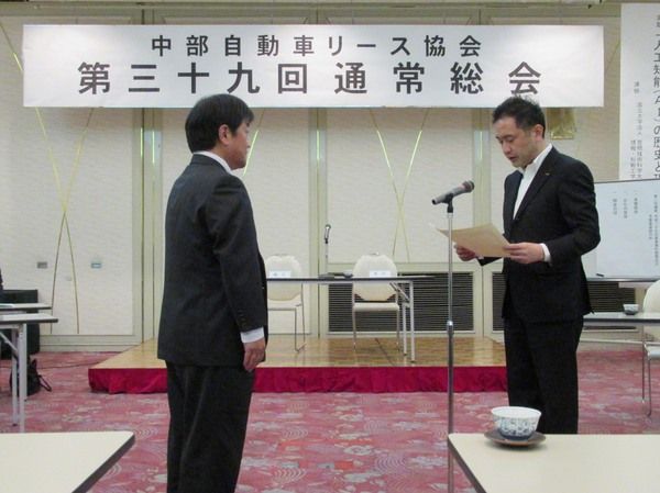 中部自動車リース協会(山口真史会長)は18日に名古屋市内のホテルで開催した第39回通常総会で、「第10回中部自動車リース協会功労表彰」を行った。リース事業の永年従事と業務功労を評し、昨年と同数の7人を表彰した。山口会長が表彰状と記念品を受...
