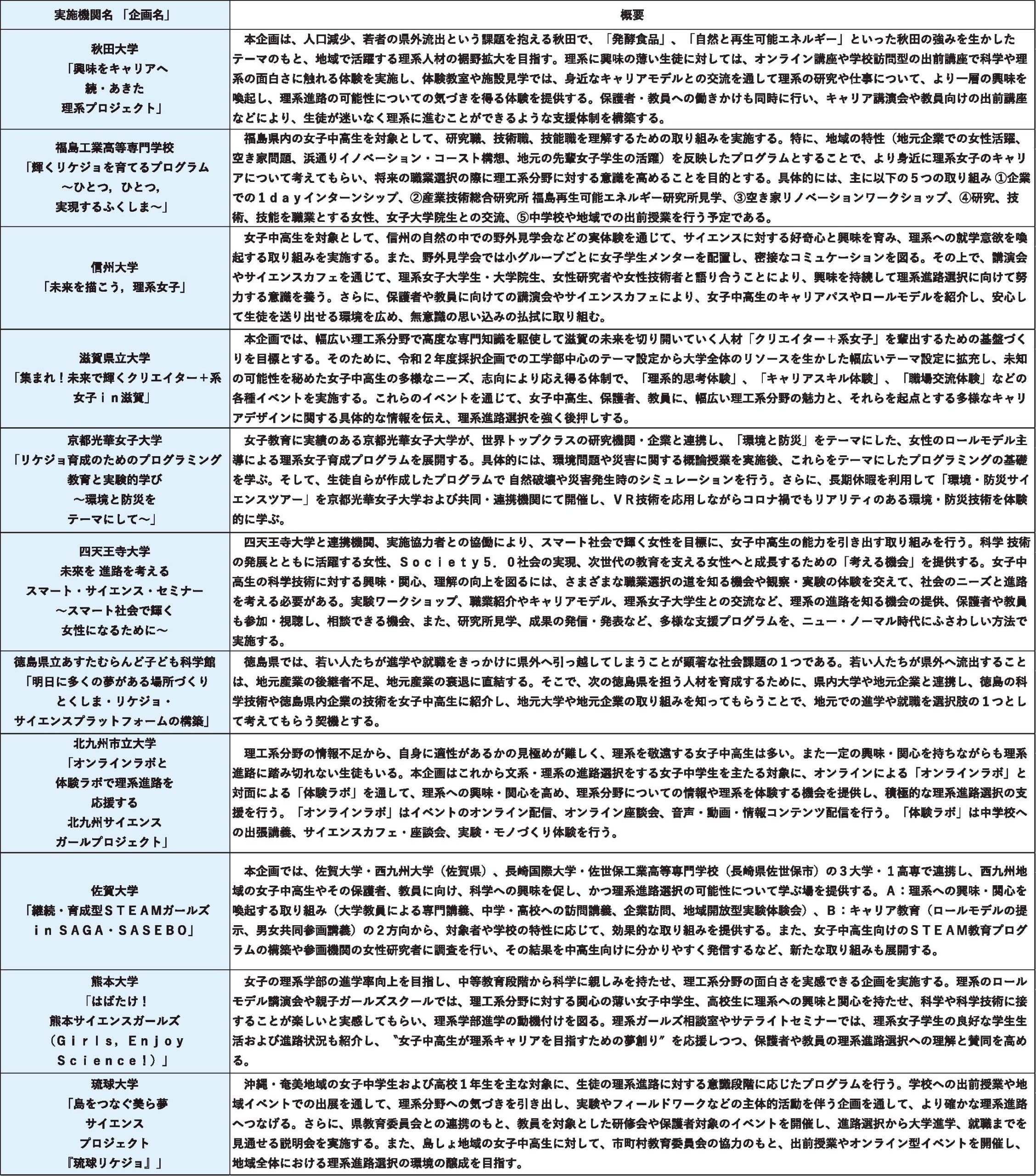 科学技術振興機構(JST、橋本和仁理事長)は、理工系分野で活躍する女性(リケジョ)の育成を狙いとした「女子中高生の理系進路選択支援プログラム」の2022年度採択機関を決定した。大学などの教育機関が、女子中高に理系の道を志してもらうために展...
