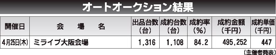〈オートオークション結果〉近畿地区 2024/4/25