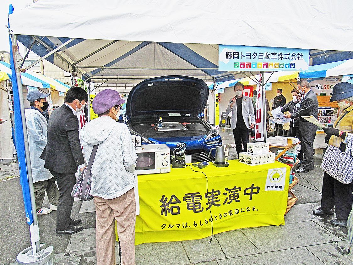 【静岡】静岡トヨタ(太田勝之社長)は、静岡市内で開催されたSDGs(持続可能な開発目標)のイベントに燃料電池自動車(FCV)「ミライ」を出展、来場者に災害時におけるミライからの給電の仕組みなどをPRした=写真。 同イベントは、4月17日に...
