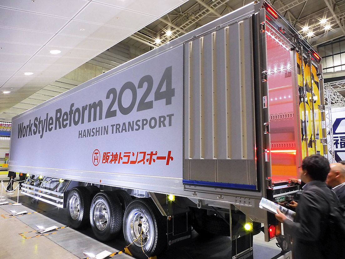 矢野特殊自動車(矢野彰一社長、福岡県新宮町)は、東邦車輌(富田政行代表、横浜市鶴見区)、中国架装メーカーとともに温度管理パネルトレーラー「XPS2024」を開発した。同社によると、荷室側面が1枚のパネルとなっている温度管理トレーラーは国内では例をみないという。「ジャパントラックショー2024」で初公開した。