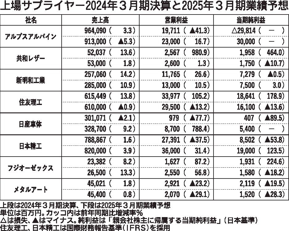 〈上場サプライヤー2024年3月期決算と2025年3月期業績予想〉(5/14付)