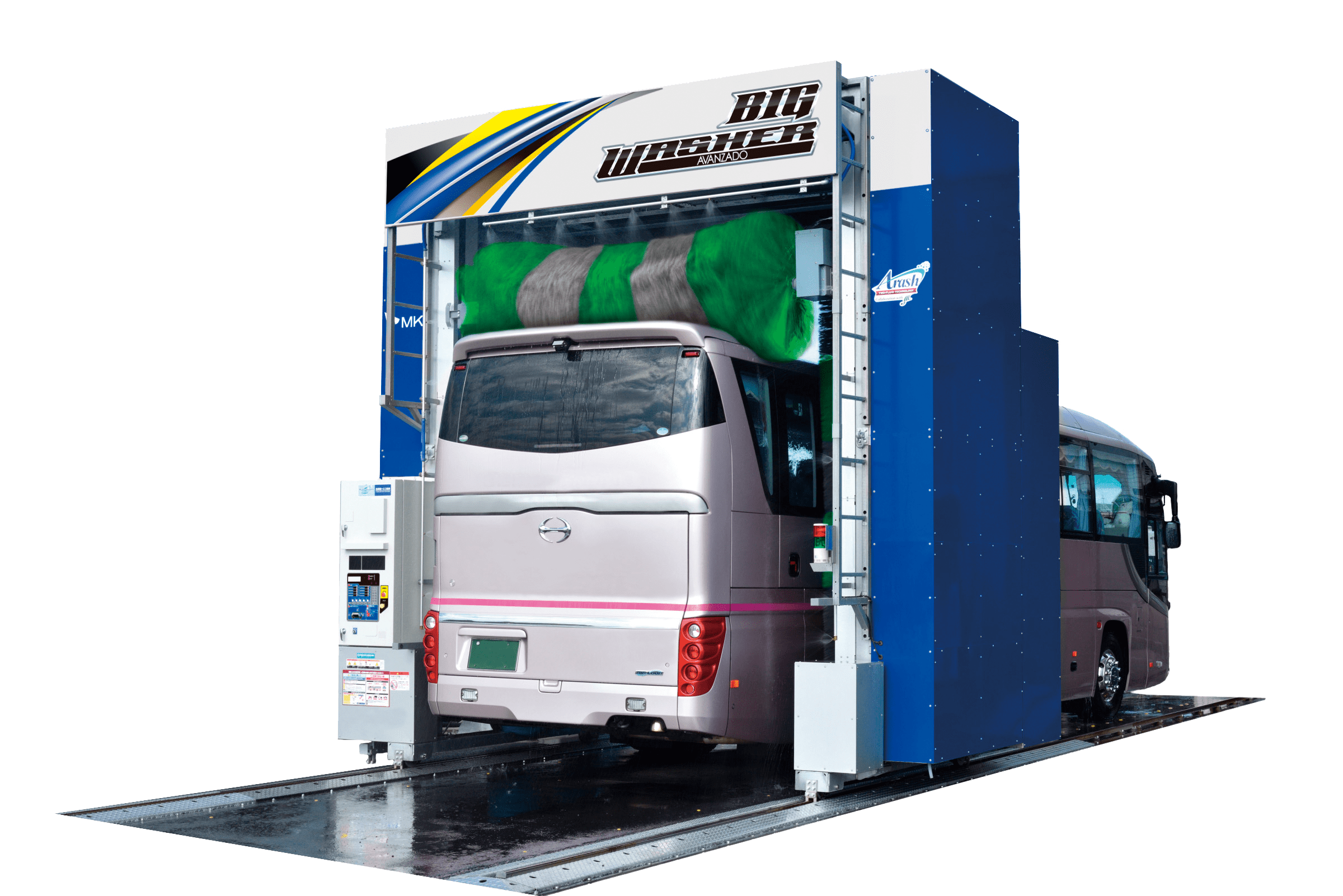 このほか、大型車の洗車事情を解決に導く機器として、大型門型洗車機「ビッグウォッシャーアバンザード」を出展する。ビッグウォッシャーアバンザードは大型車両の幅広い洗車ニーズに対応できる機器で、車種判別センサーにより車種と大きさを自動判別。これにより受付時の選択ミスの心配がない。大型車だけでなく、車高1850ミリメートル以上の商用ワゴン車の洗浄も可能だ。洗車時間も早く、10トンクラスの高速洗車時は4分を切るスピード洗車を実現する。節水効果も高く、従来機に比べて29%の節水性能を実現。洗浄性と耐久性もアップしている。