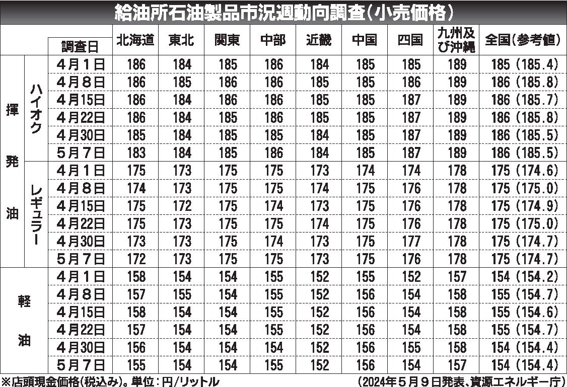 〈給油所石油製品市況週動向調査(小売価格)〉2024/4/1~5/7
