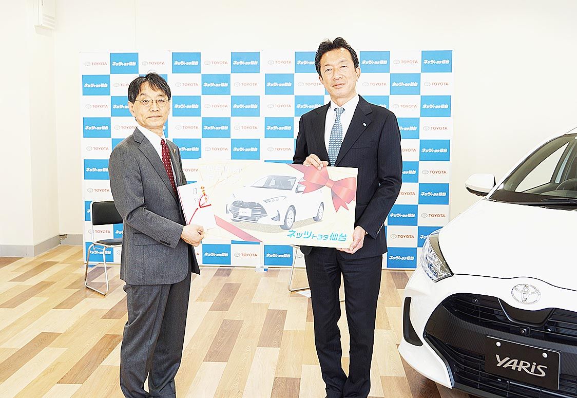 【仙台】ネッツトヨタ仙台(三浦勇治社長)は、宮城県共同募金会(加藤睦男会長)に、トヨタ「ヤリス」1台の無償提供と寄付金30万円を寄贈した。仙台市宮城野区の日の出店で贈呈式が開催され、三浦社長が加藤会長に目録を手渡した。ヤリスと寄付金は、同...