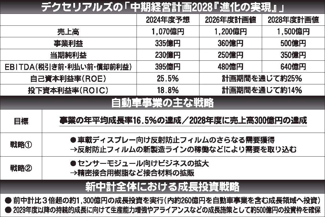デクセリアルズ、2028年度新中計 売上高4割増1500億円へ 車載ディスプレー用フィルム軸に