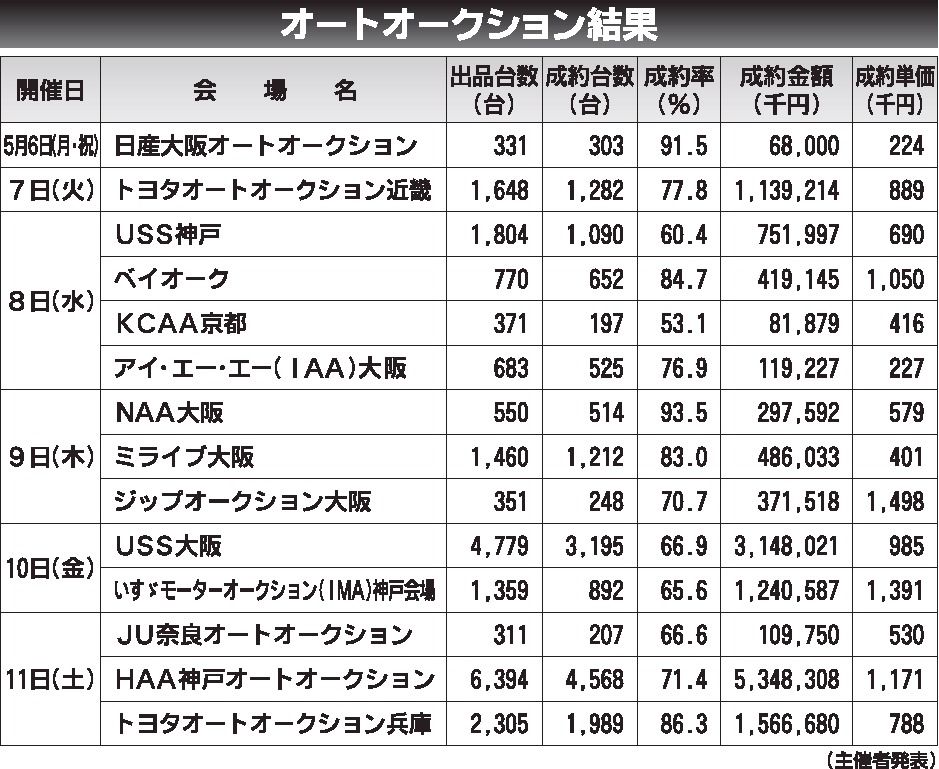 〈オートオークション結果〉近畿地区 2024/5/6~11