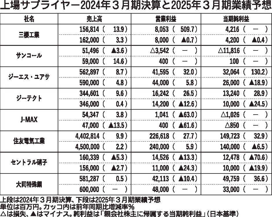 〈上場サプライヤー2024年3月期決算と2025年3月期業績予想〉(5/16付)