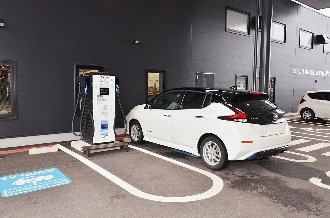 山形日産、寒河江店を一新 再エネでEVに電力供給、太陽光パネルと充放電設備設置 環境負荷低減のモデルケースに