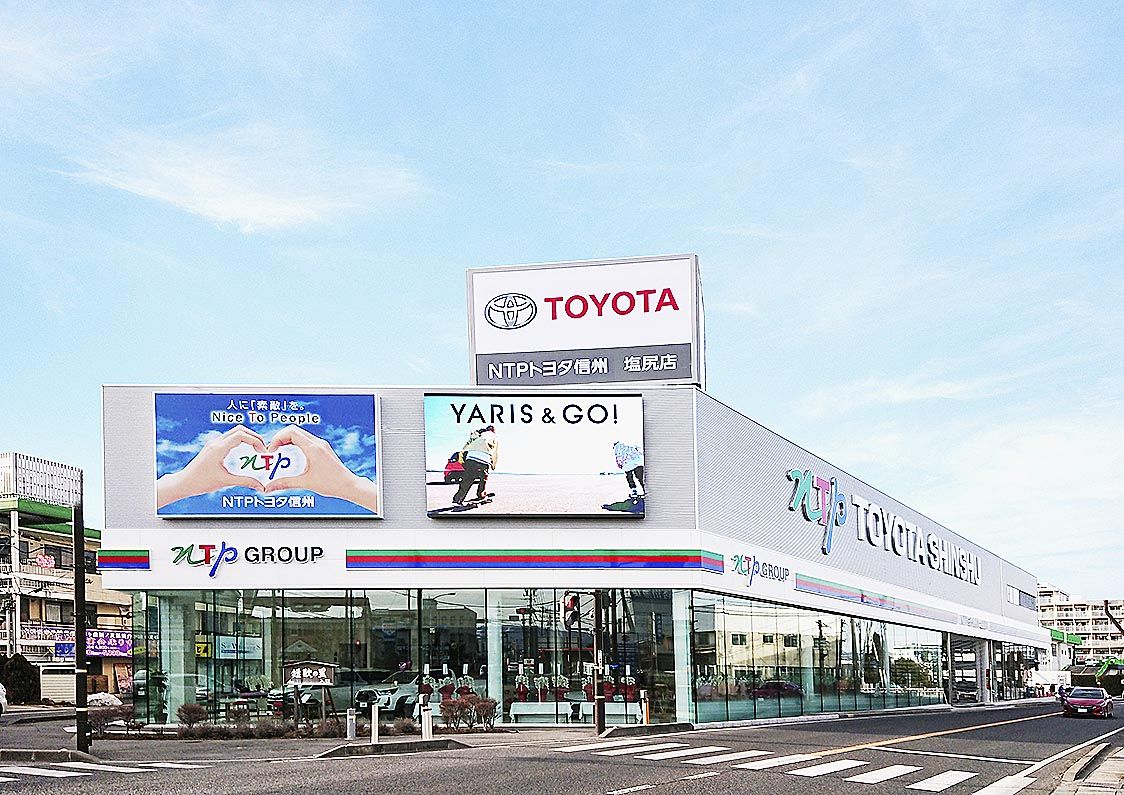 〈NTPトヨタ信州、2店舗を相次ぎ一新〉塩尻店 初のデジタルサイネージ設置