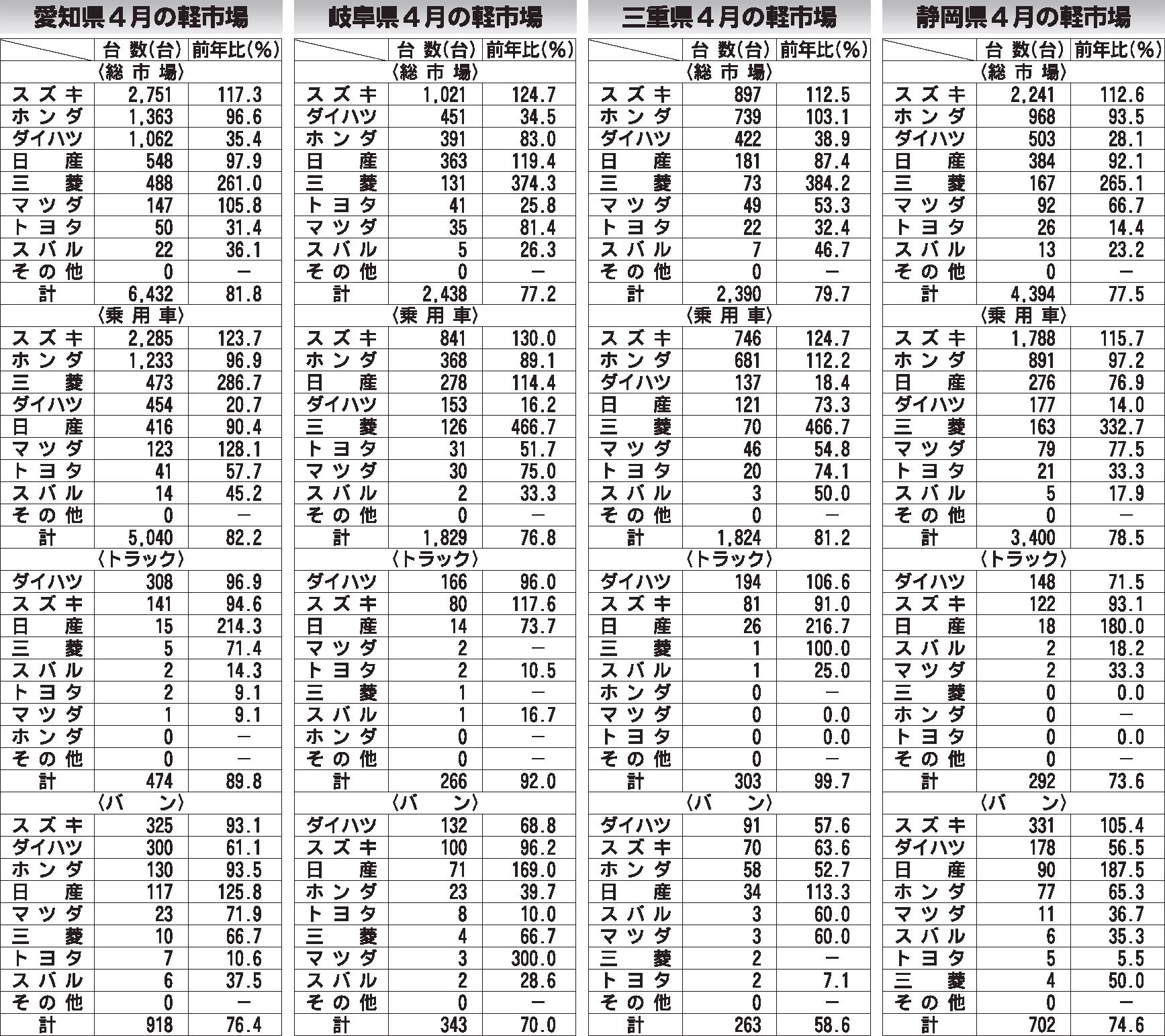 〈4月の軽市場〉愛知県/岐阜県/三重県/静岡県