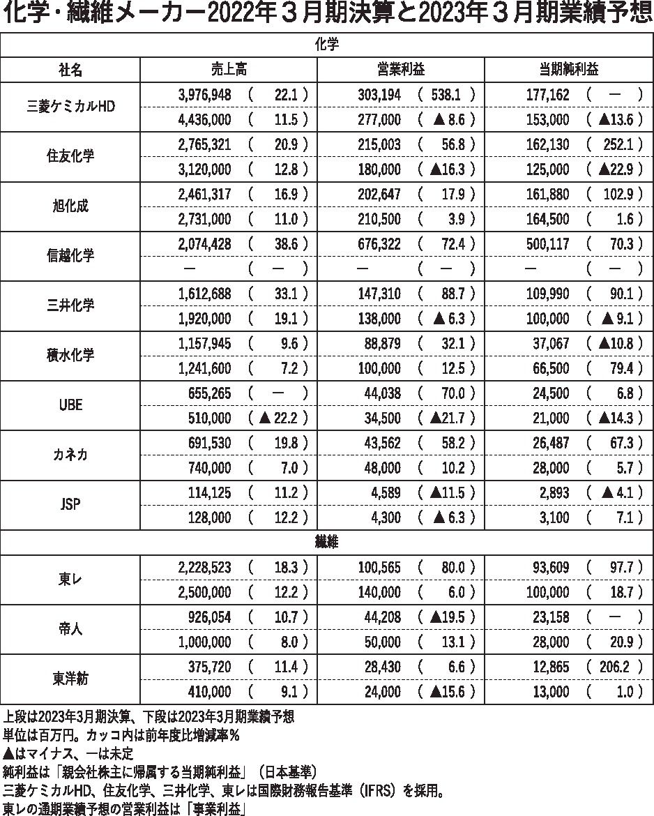 上場している主要な化学メーカー12社の今期(2023年3月期)業績は、価格転嫁が収益確保のカギとなりそうだ。ロシアのウクライナ侵攻もあって原燃料価格が高騰、足元では国産ナフサの基準価格が1㌔㍑当たり8万円を超えている。これらをコスト低減な...