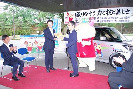 スズキ自販北陸(金田達朗社長)は8日、福井県へ「ソリオ ハイブリッド」を寄贈した。これは同社がオフィシャルサプライヤーを務める「第73回国民体育大会 福井しあわせ元気国体」と「第18回全国障害者者スポーツ大会 福井しあわせ元気大会」の契約...