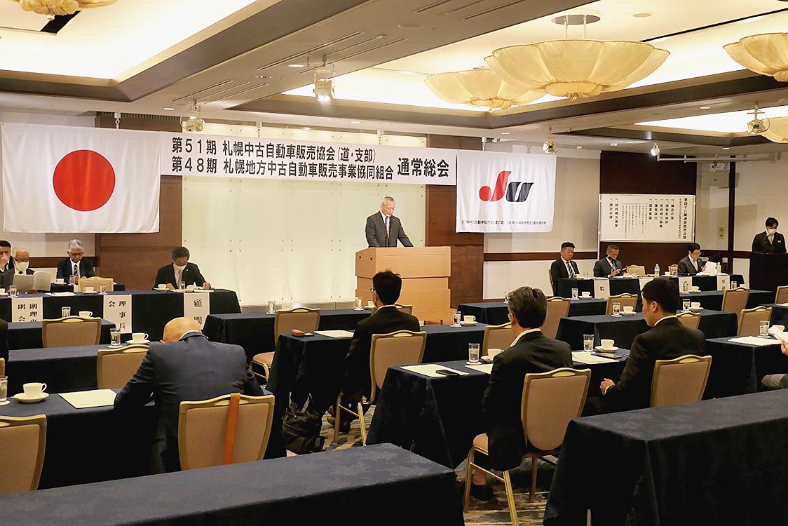 【札幌】札幌地方中古自動車販売協会・同事業協同組合(JU札幌、近藤昇会長・理事長)は、札幌市内のホテルで通常総会を開催した。23年度事業報告並びに収支決算報告や24年度事業計画案や収支予算案などを審議し、原案通り承認した。役員補選で森康彰...