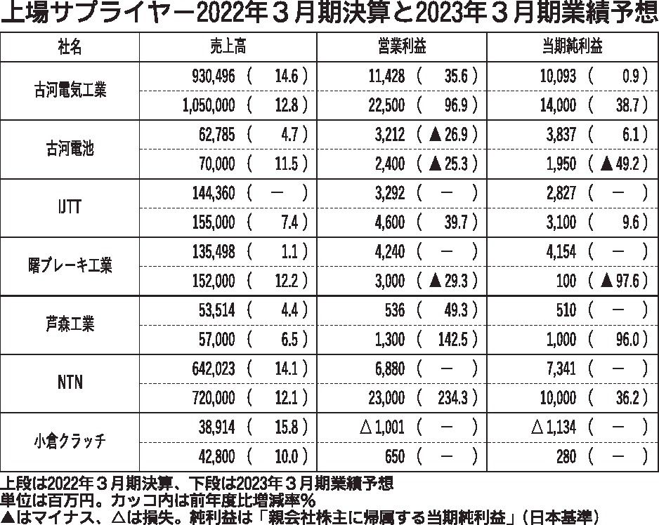 〈上場サプライヤー2022年3月期決算と2023年3月期業績予想〉(5/18付)