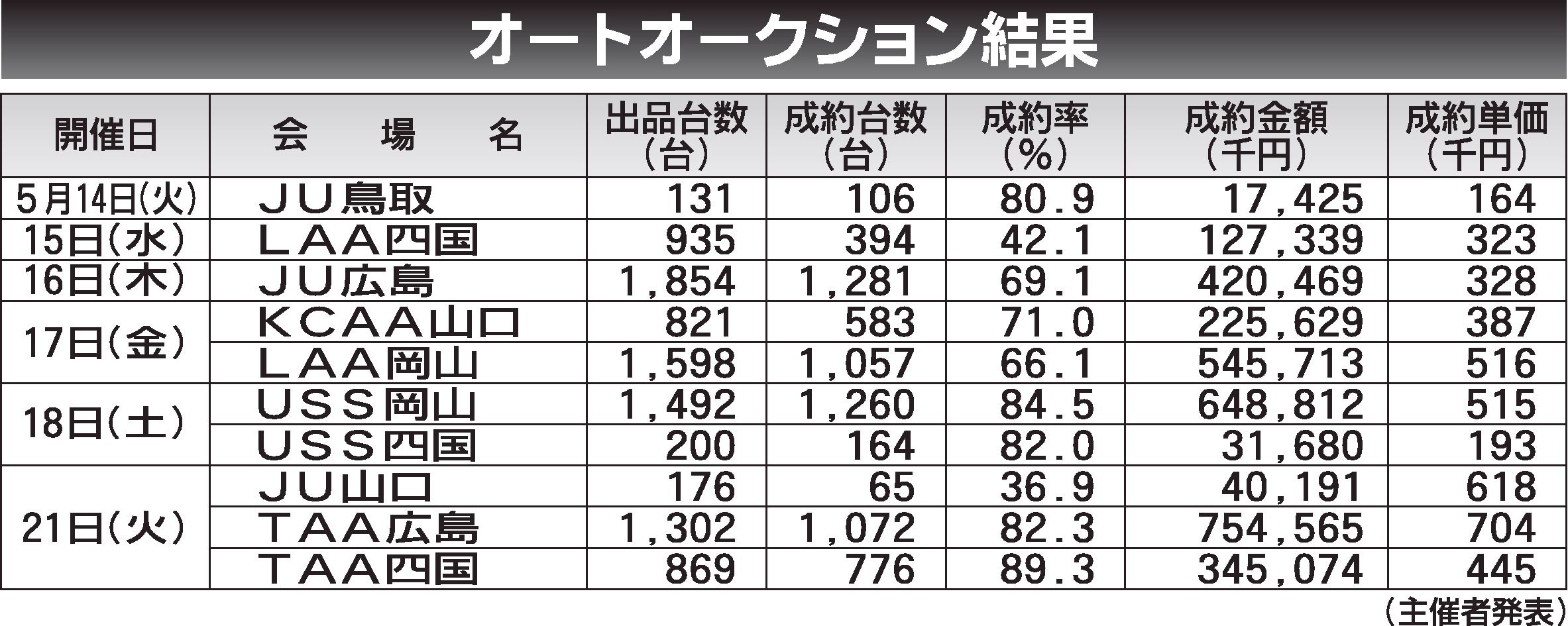 〈オートオークション結果〉中四国地区 2024/5/14~21