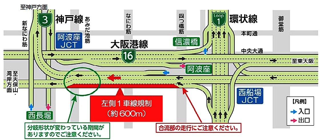 【大阪】阪神高速道路(吉田光市社長、大阪市北区)は、16号大阪港線(天保山方面)の阿波座付近で、長期的な終日1車線規制を6月10日から開始する。規制に伴い、周辺地域の交通混雑が予測され、利用者らに注意を呼びかけている。 1号環状線と合流し...