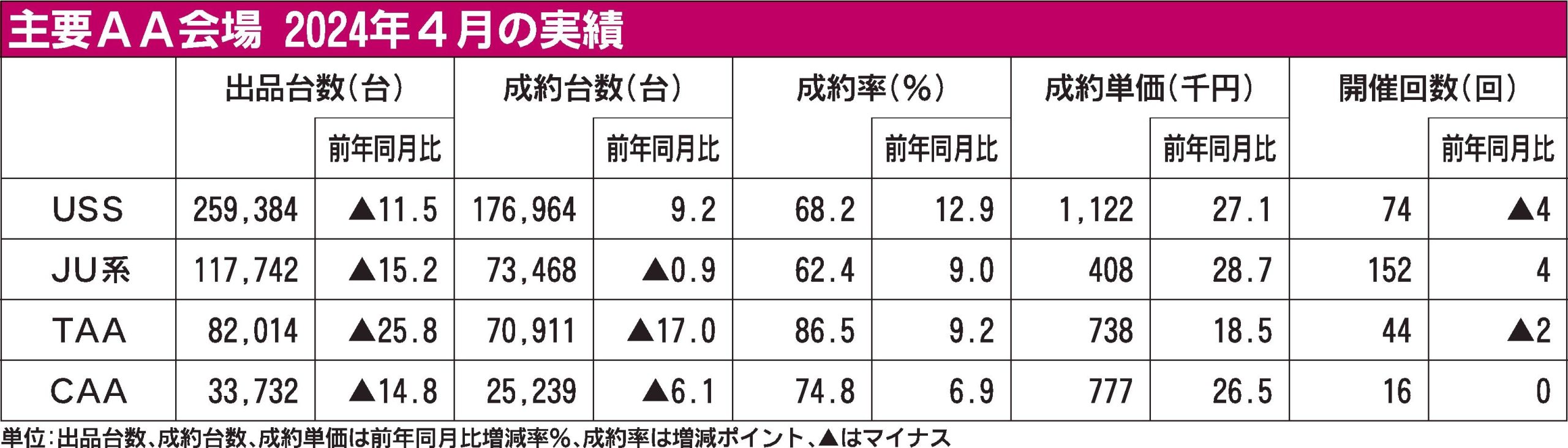 主要AA4事業者の4月実績、出品3カ月連続前年割れ 新車落ち込み響く