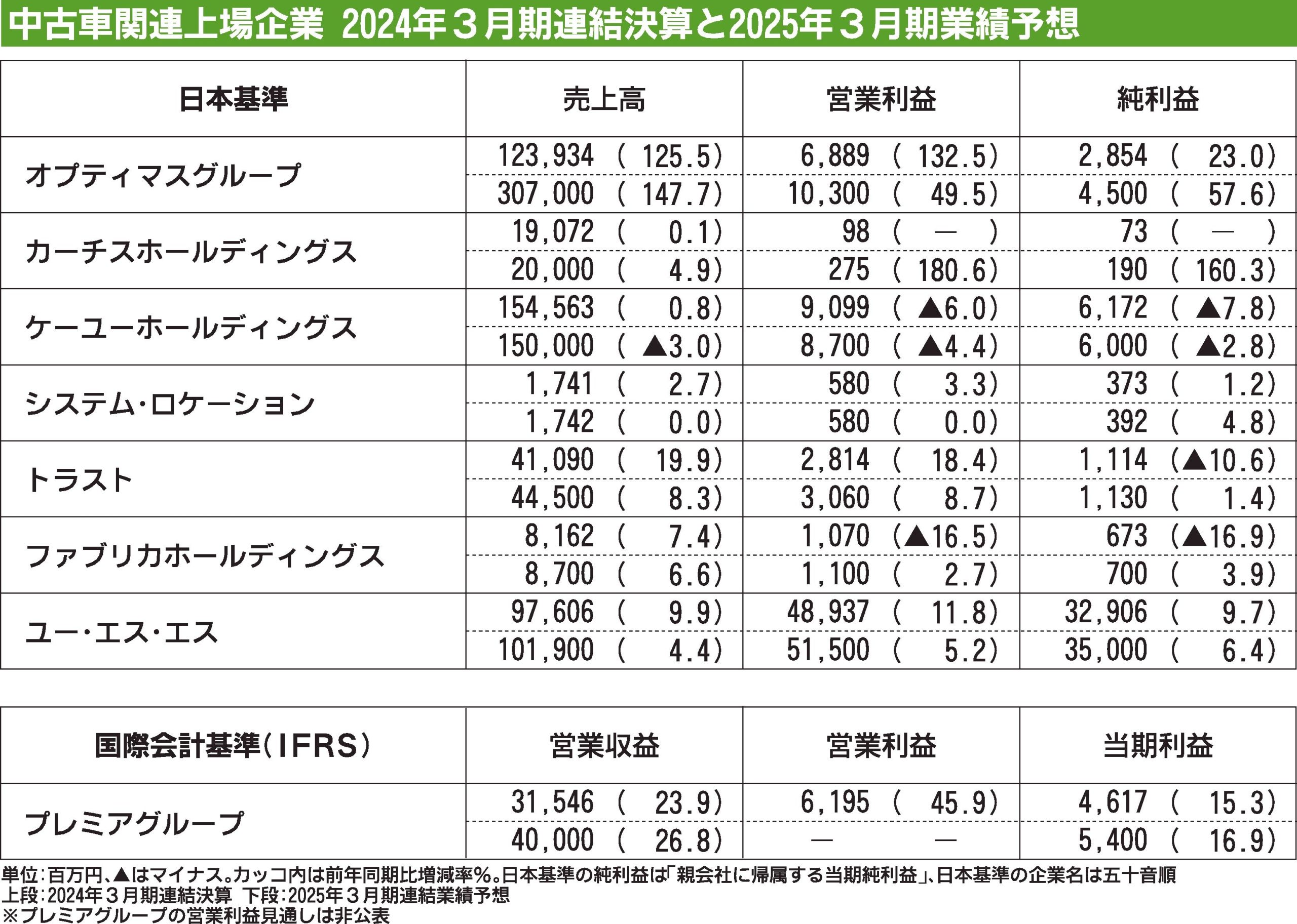 主要な中古車関連上場企業の2024年3月期の連結決算が出そろった。日刊自動車新聞が今回取り上げた8社のうち、5社が増収増益となった。新車の供給制約が回復し、下取り車の発生台数も増加したことで、中古車オークション(AA)や小売りなどが追い風...