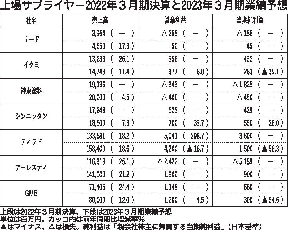 〈上場サプライヤー2022年3月期決算と2023年3月期業績予想〉(5/24付)