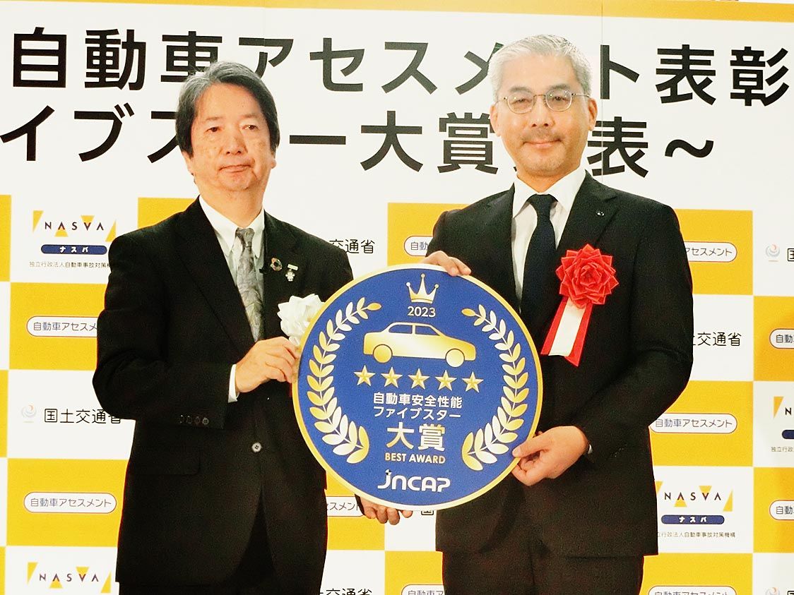 国土交通省と自動車事故対策機構(NASVA、中村晃一郎理事長)は28日、2023年度の自動車アセスメントで高い評価を得た車種を紹介する「自動車アセスメント表彰式」を都内で開いた。総合評価で最高得点を得た「ファイブスター大賞」にはスバルの「...