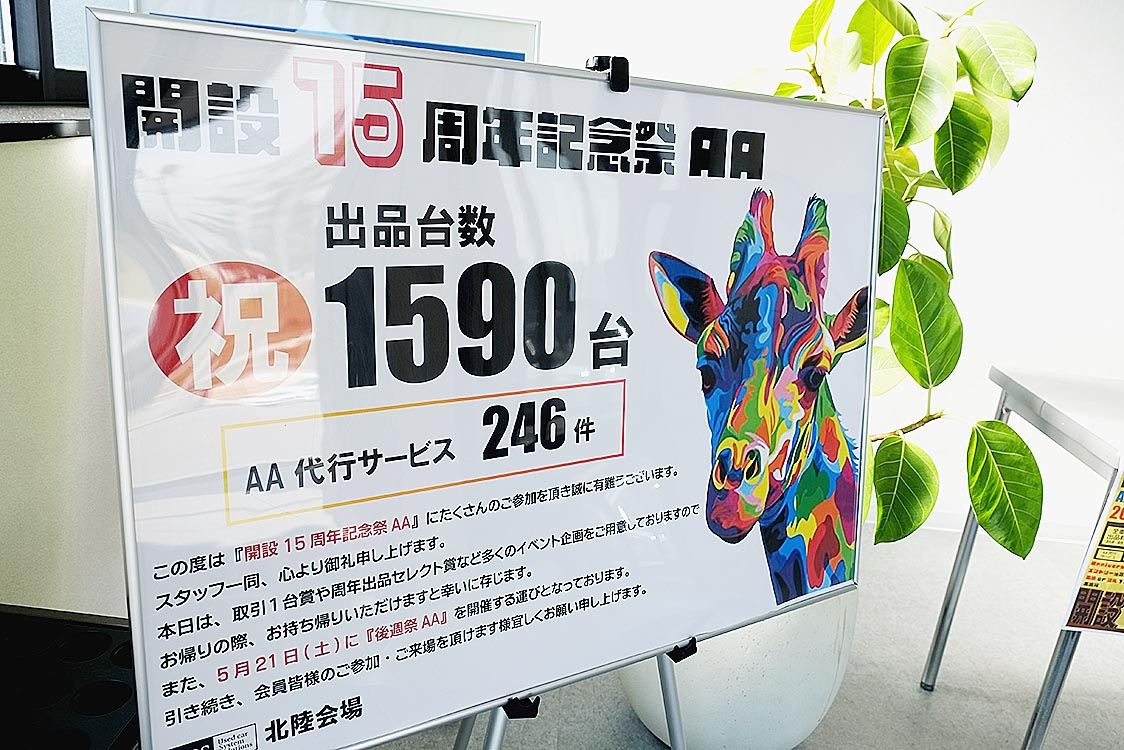 【金沢】ユー・エス・エス(USS)北陸会場は同会場の「開設15周年記念祭オークション(AA)」を14日に開催し、同会場歴代2位となる出品台数1590台を集荷した。北陸エリア全域の取引先に対する営業活動を一層強化したほか、陸送会社との提携に...