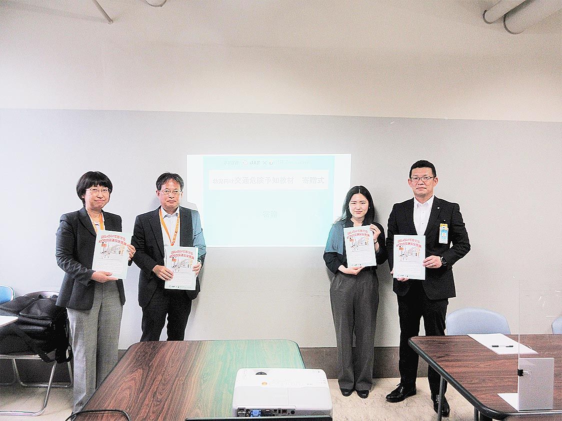 日本自動車連盟(JAF)愛知支部(寺町一憲支部長)は、名古屋市立大学で保育を学ぶ学生とともに幼児向け交通安全教材を作製、県内の幼稚園、保育園をはじめとする幼児教育団体に寄贈した=写真。 支部では小学1年生に相当する7歳児の歩行中の交通事故...