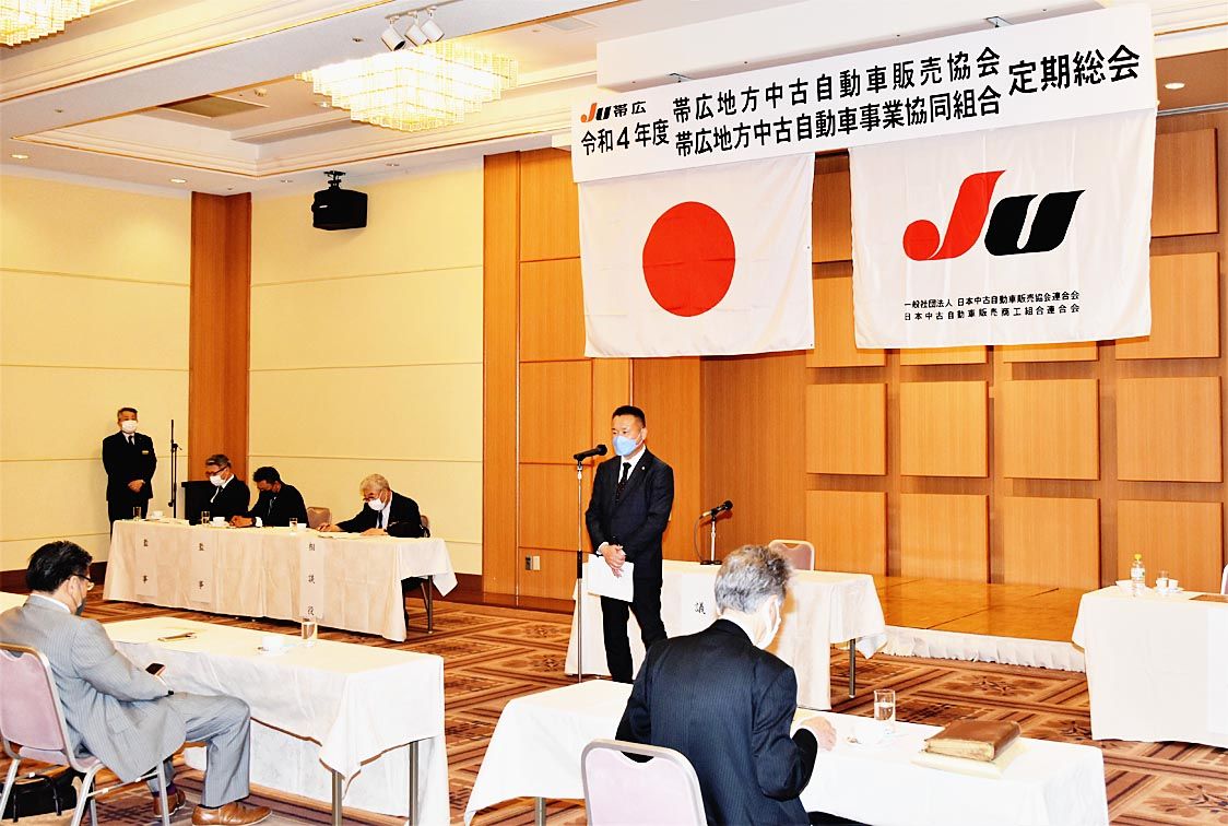 【帯広】帯広地方中古自動車販売協会・同事業協同組合(上嶋康秀会長・理事長、JU帯広)は、帯広市内のホテルで今年度定期総会を開催=写真。審議事項をすべて可決した。 冒頭のあいさつで上嶋会長・理事長は「十勝地区は大手中古車販売店の参入が相次い...