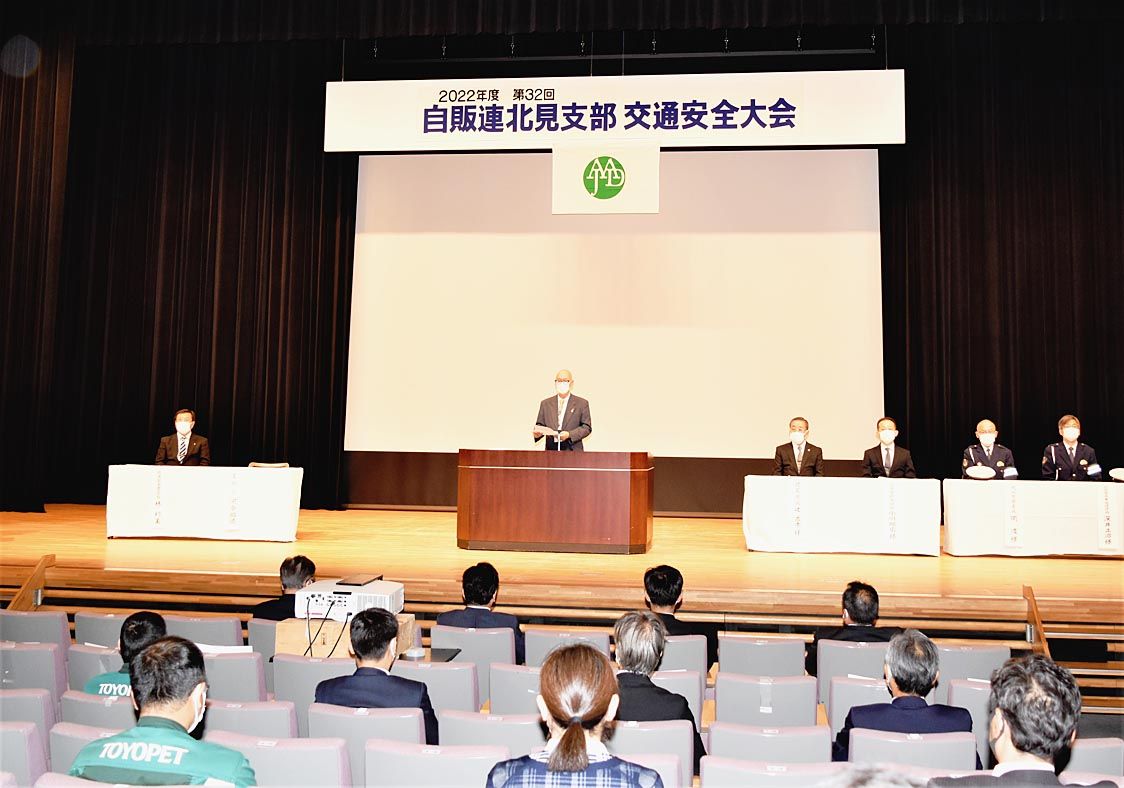 【北見】自販連北見支部(河合昭徳支部長)は、北見芸術文化ホールで「2022年度交通安全大会」を開き、会員ディーラーの社員ら150人が参加した。コロナ禍で2020、21年は大会を中止し、3年ぶりの実施。地域からの交通事故一掃を願い、安全運転...