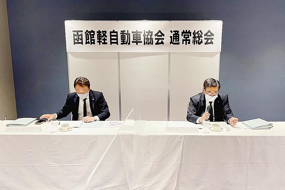 【函館】函館軽自動車協会は、函館市内のホテルで「令和4年度通常総会」を開き=写真、すべての議案を満場一致で可決した。任期満了に伴う役員改選では、齋藤恭司会長が留任した。 役員改選では、齋藤会長(函館スズキ社長)と松谷斎副会長(函館マツダ社...