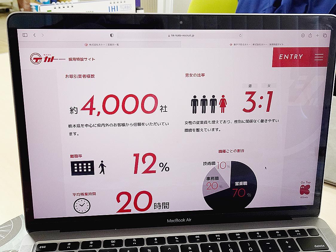 カトー(加藤圭典社長、栃木県宇都宮市)は、採用活動の充実に力を入れている。例えば独自の採用サイトに掲載している会社情報でも、できるだけ数字を用いることで分かりやすく伝えることを重視している。さまざまな情報を可視化し、求職者に発信していくこ...