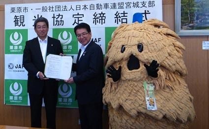 【栗原】日本自動車連盟(JAF)宮城支部(●岡博文支部長)と栗原市(千葉健司市長)は「観光連携協定」を締結した。栗原市役所で6月28日に開催した締結式では、●岡支部長と千葉市長が協定書の署名を交わした。JAF宮城支部では、栗原市の観光スポ...