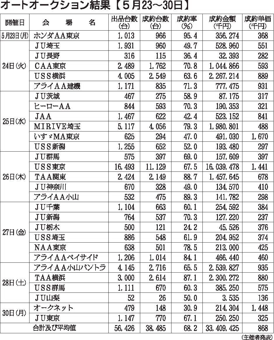 〈オートオークション結果〉首都圏 2022/5/23~30