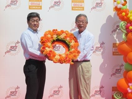 【八戸】トヨタカローラ八戸(塚原安雅社長)は7日、八戸市の根城店で「日本一周花冠パレードの「受渡式」を行い、トヨタカローラ青森(大柳康三郎会長)の白戸達代表取締役専務が塚原社長に「花冠」を手渡した。 同パレードは今年3月6日にカローラ生誕...