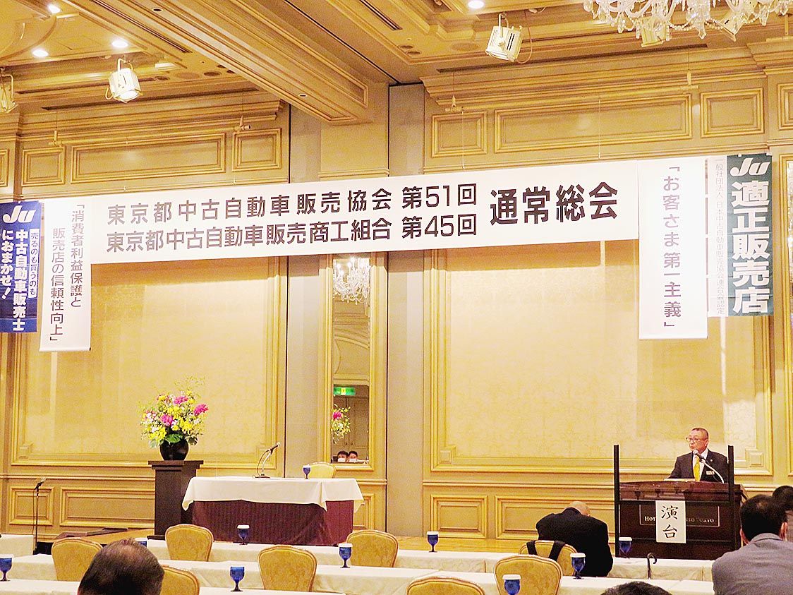 【東京】東京都中古自動車販売協会・同商工組合(JU東京、萩田典雄会長・理事長)は、都内のホテルで通常総会を開催した=写真。2022年度の事業計画でオークション出品目標を前年度比10・0%増の7万台、成約台数を4万2千台に設定した。 総会は...