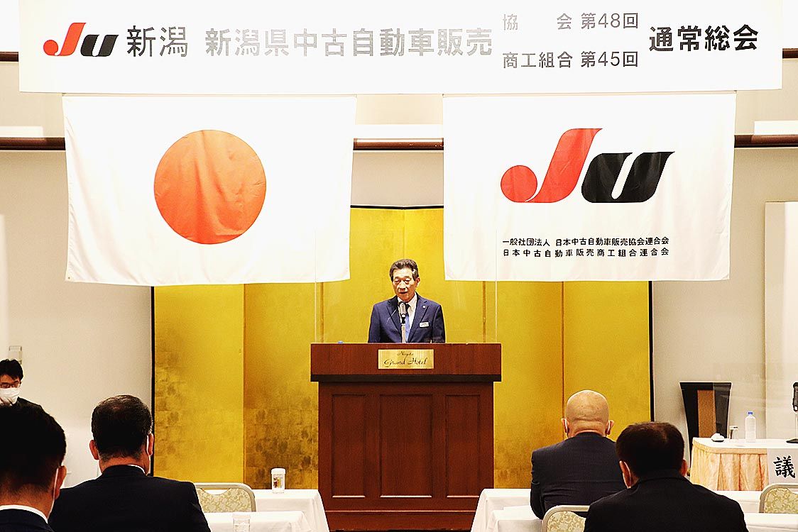 【新潟】新潟県中古自動車販売協会・同商工組合(JU新潟、海津博会長・理事長)は、販売協会「第48回通常総会」および商工組合「第45回通常総会」を新潟市内で開催した=写真。2021年度事業報告並びに収支決算報告、22年度事業計画並びに収支予...