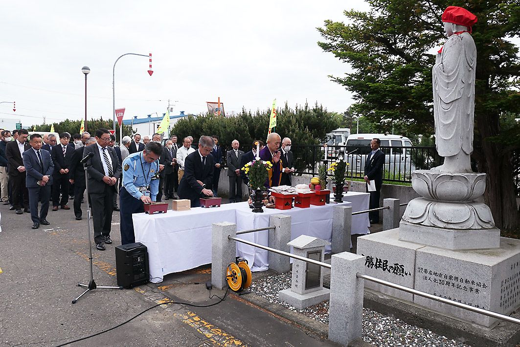 帯広地方自家用自動車協会(徳井裕昭会長)は、帯広自動車連合ビル敷地内に建立された「交通安全合掌地蔵」で「交通安全合掌地蔵祈願祭」を開催した。辻榮敏文帯広運輸支局長をはじめ自家用自動車協会員など関係者35人が出席し、夏のレジャーシーズンを前に...