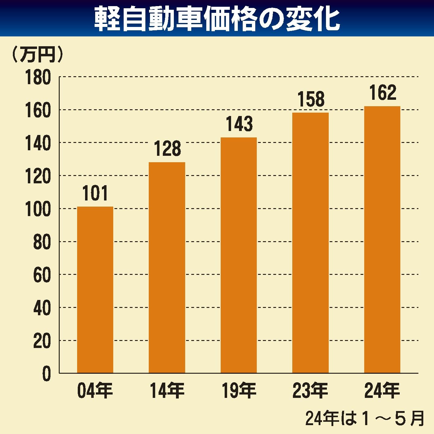 新車価格はどれぐらい上がったのか。総務省や経済産業省の統計を調べると、20年前と比べ、軽乗用車で6割、小型乗用車で3割近く上昇したことがわかった。原材料価格や労務費などの上昇に加え、安全装備の充実や電動車シフトが価格を押し上げている。足元...