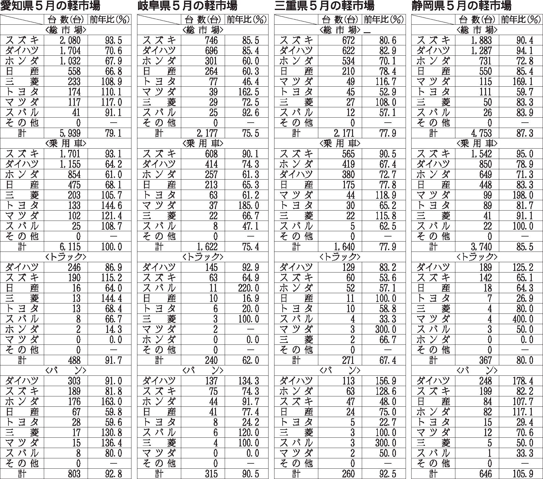 〈中部4県5月の軽市場〉愛知県/岐阜県/三重県/静岡県
