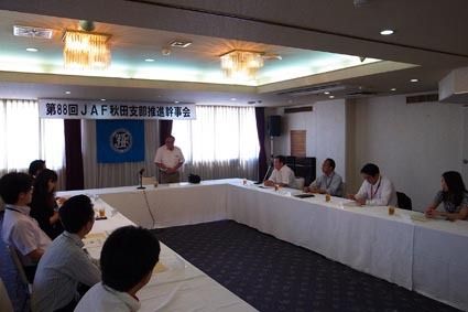 【秋田】日本自動車連盟(JAF)秋田支部(伊藤哲之支部長)はこのほど、秋田市内のホテルで「第88回推進幹事会」を開催した。2017年第2四半期(4~6月)の会員獲得の実績報告や年間キャンペーンの進捗などが確認された。 会議冒頭の挨拶で伊藤...