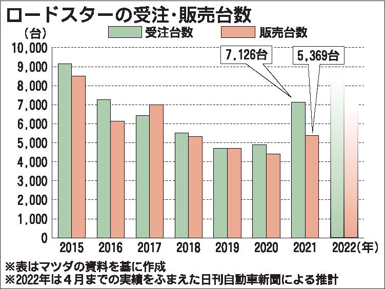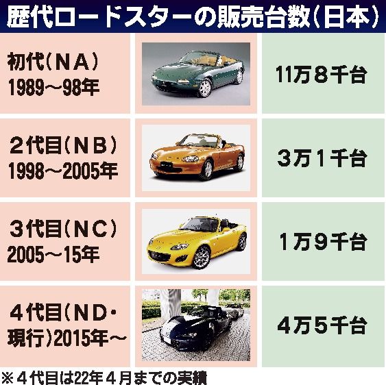 マツダの2人乗りオープンカー「ロードスター」の販売が好調だ。半導体不足により新車全体の販売が伸び悩む中、同モデルの1~4月の販売台数は前年同期比56・7%増の3796台と大幅に増加した。今年に入ってからの受注台数も5月までの累計で同57・...