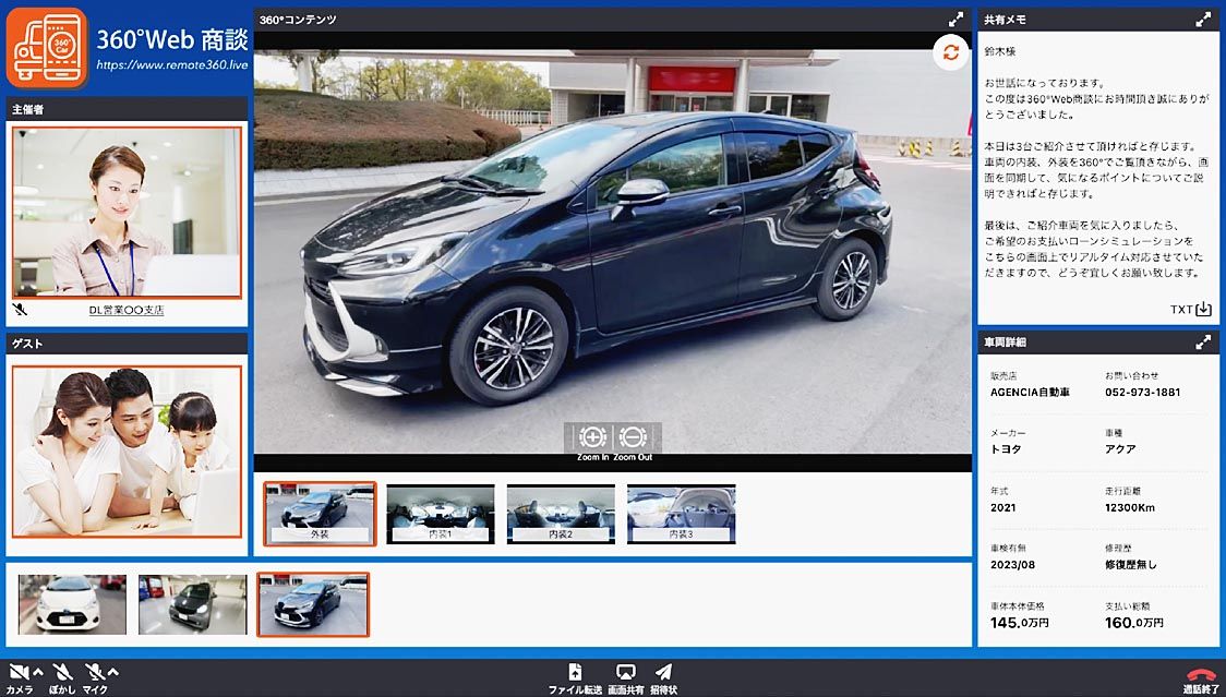 アジェンシア、車両の内外装360度で表示 確認から審査までワンストップ 新商談ツール開発