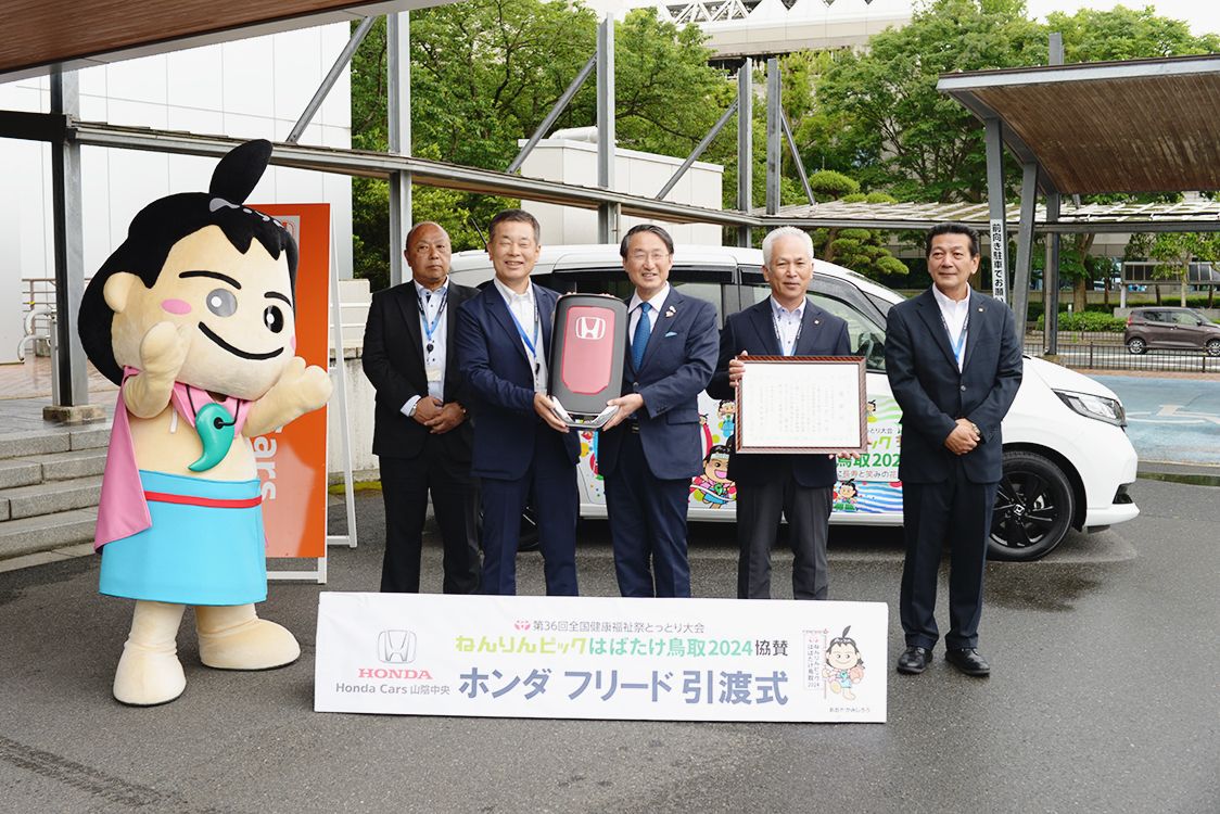 【鳥取】ホンダ山陰中央(金口伸社長)は、10月に開催される「第36回全国健康福祉祭とっとり大会(ねんりんピックはばたけ鳥取2024)」に協賛し、同実行委員会(平井伸治会長=鳥取県知事)に「フリード」1台を貸与した。大会の準備やPR活動の移...