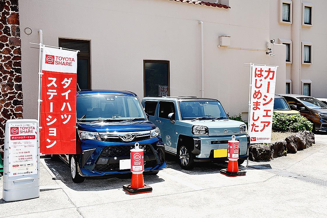 【静岡】ダイハツ沼津(池原勉社長)は、静岡県河津町の「伊豆今井浜東急ホテル」と共同でカーシェアリングサービス「トヨタシェア」の試験運用を開始した。また同函南町の別荘地「南箱根ダイヤランド」内のカーシェアステーションに、軽トラックのハイゼッ...
