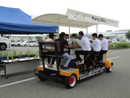 同時に6人が横向きでペダルを漕ぐことで進むというユニークな乗り物が登場した。バスや大型車の整備を手掛ける神姫商工(大西毅社長、兵庫県姫路市)が「パーティバイク」と銘打って製作した。 乗車定員は運転手1人を含めて9人で、サイズは全長4100...