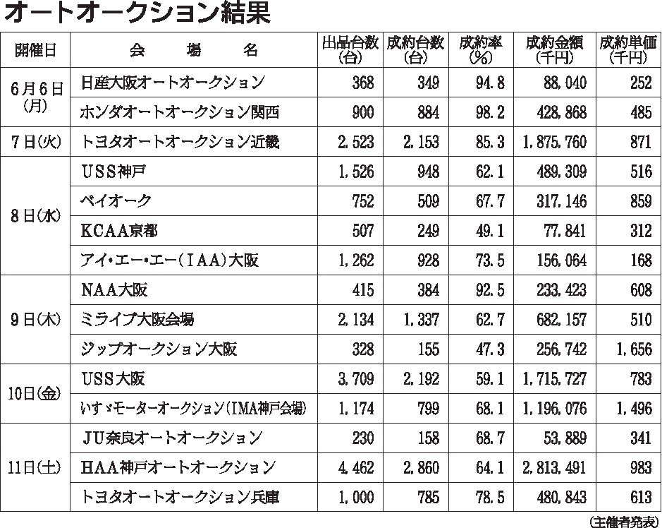〈オートオークション結果〉近畿地区 2022/6/6~11