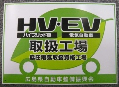 広島県自動車整備振興会、告知看板でHV整備工場アピール
