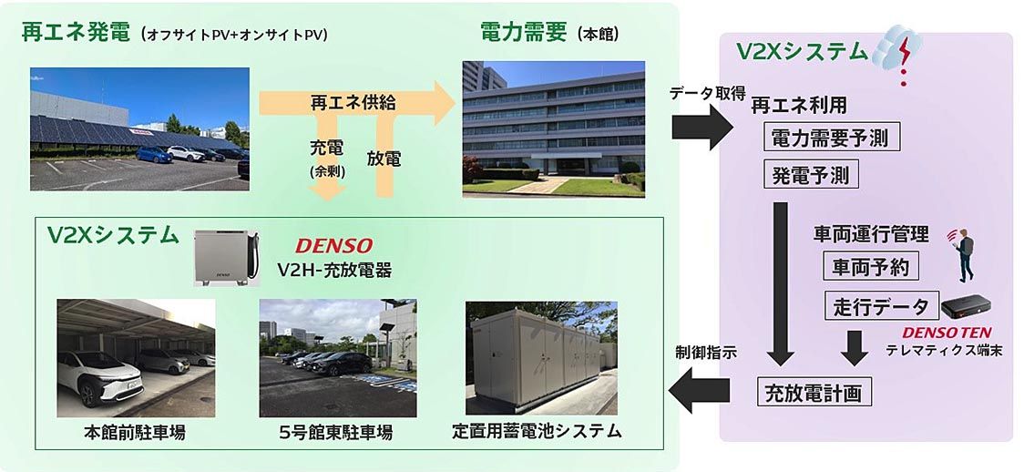 デンソー、本社でV2X実証 オフィスで太陽光電力活用 ノウハウ生かし事業化へ