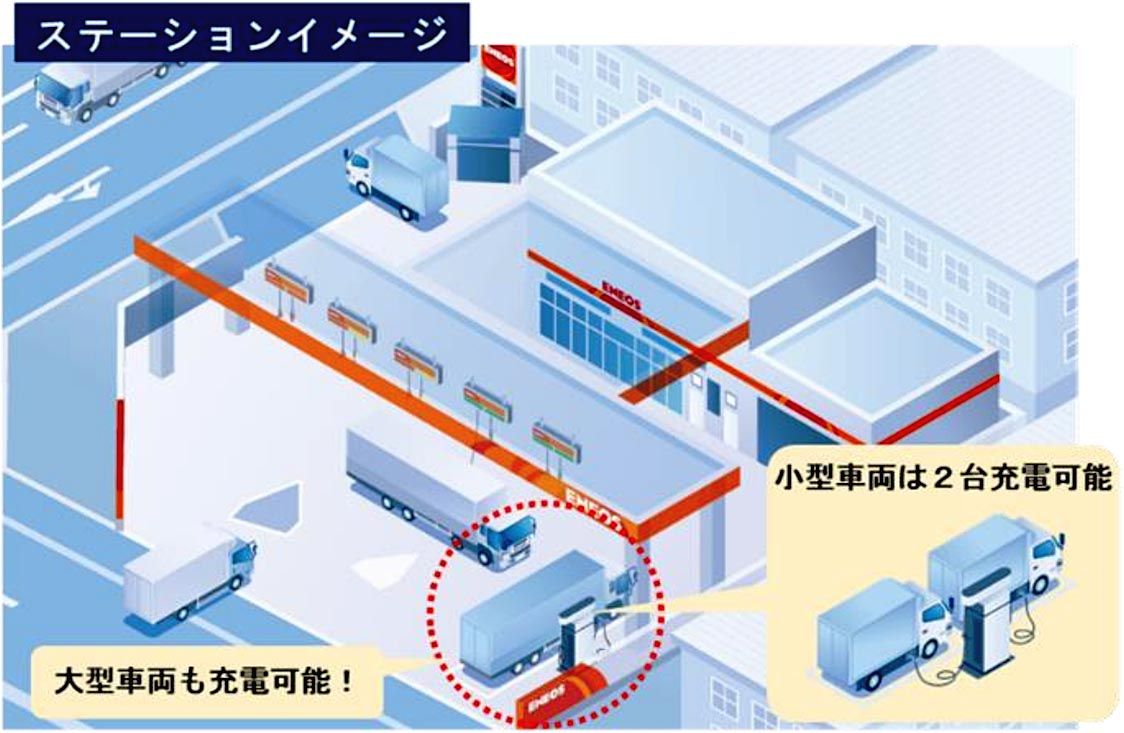 エネオス、7月に共用充電ステーションの実証 全長10㍍EVトラックに国内初対応